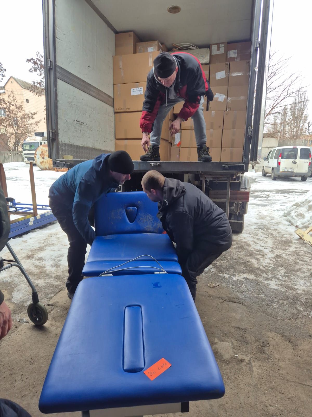 Zusätzlich konnten wir wertvolles Inventar aus dem mittlerweile geschlossenen Marktkrankenhaus aus Werneck übernehmen. Jede verbleibende Lücke wurde mit hunderten Paketen gefüllt, die von unseren ehrenamtlichen Helfern und Spendern vorbereitet wurden: