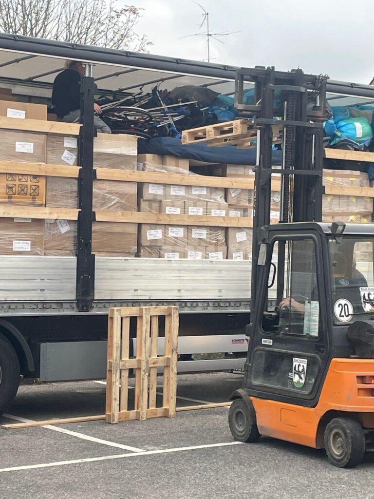 Besonders hervorzuheben ist der außerordentliche Kraftakt der ehrenamtlichen Unterstützer in den Tagen vor der Abfahrt. Nach einer kurzfristigen Absage einer Lieferung aus Darmstadt Fuldaer Helferkreises musste Arnstein innerhalb von nur anderthalb Tagen zusätzlich Waren für zehn Paletten sortieren und packen. Das Packen ging unter Volldampf noch weiter, als der LKW bereits auf dem Hof stand – ein Beleg für das unglaubliche Engagement.